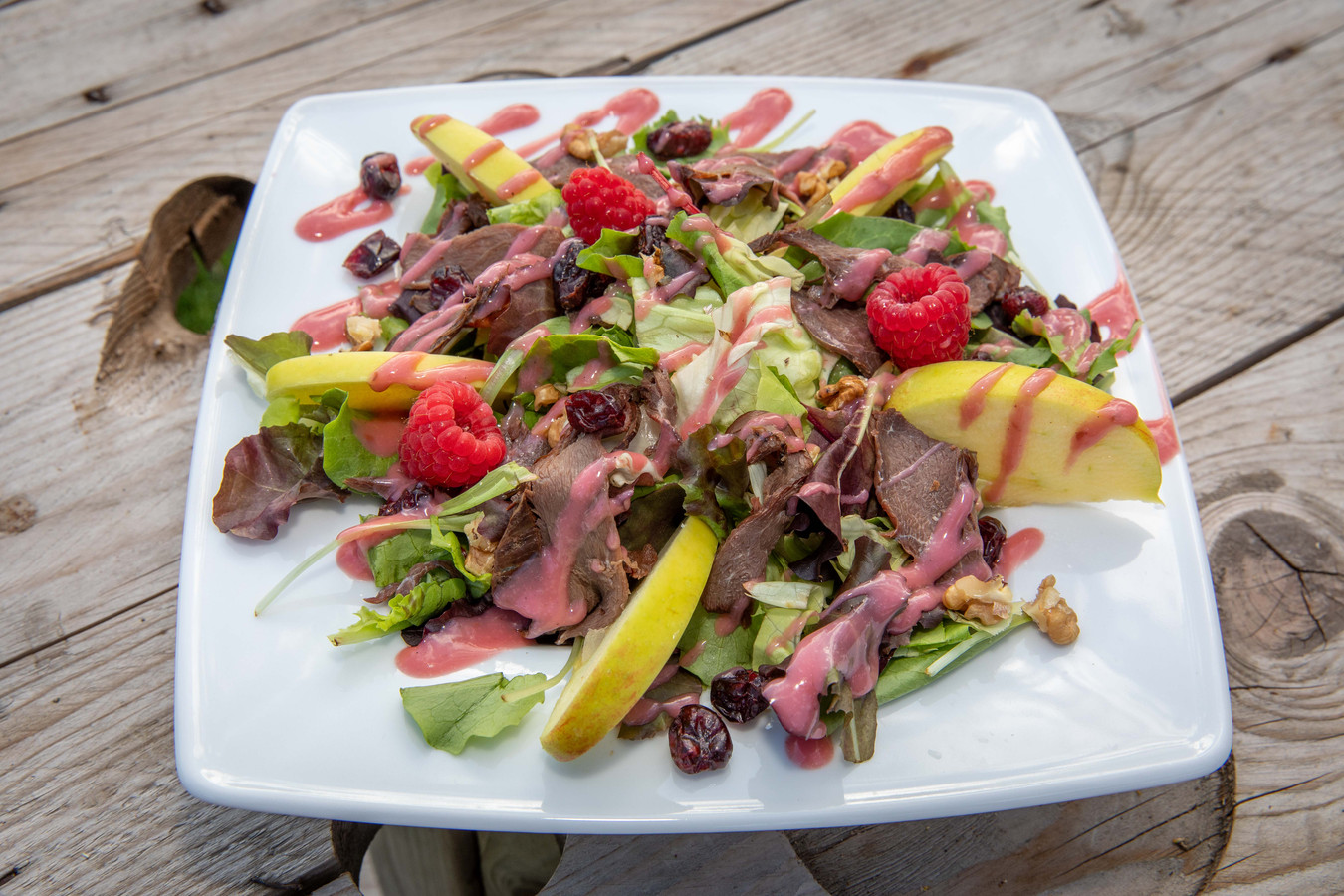Het recept voor salade Périgourdine. Gerookte borst van Schipholgans. Een mooi tussengerecht voor het Franse kerstdiner van Jonas.